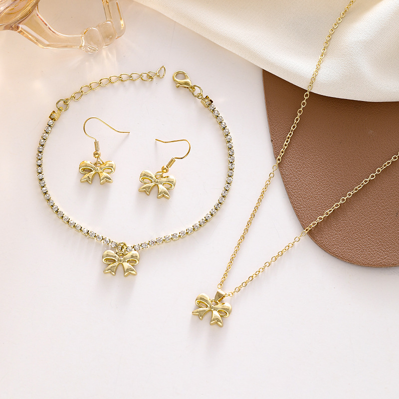 Cross-border European and American Hot-selling Jewelry suit Women's Bow Necklace All-match High-end Instagram Style Bow Bracelet Earrings