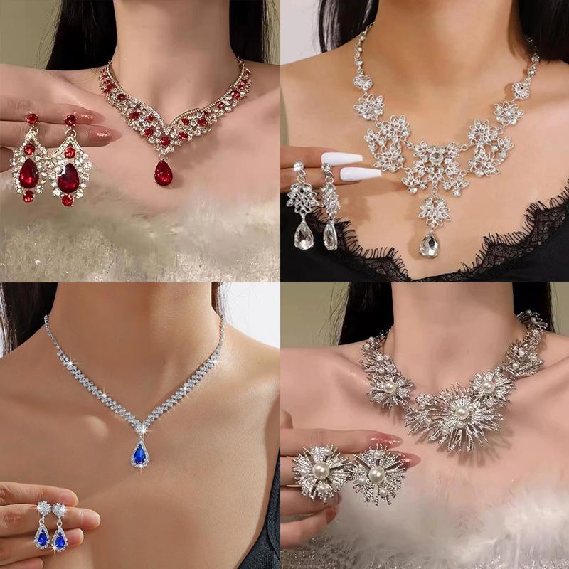 Cross-border New Red Water Drop Earrings Necklace suit Light Luxury High-end Feeling Banquet Wedding Bridal Jewelry