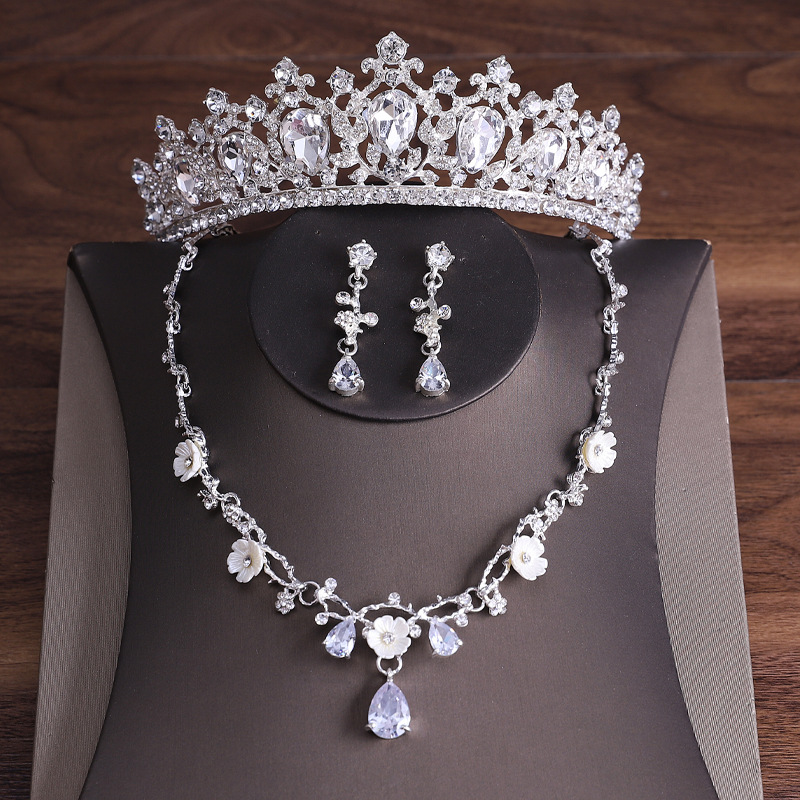 Luxury Crystal Korean style headdress bridal crown necklace three-piece suit banquet dress accessories wedding dress accessories