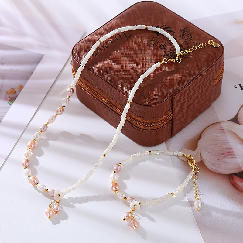 Pink Lover Original Baroque Natural Freshwater Pearl Necklace Light Luxury All Match Rose Stone Bracelet Jewelry suit