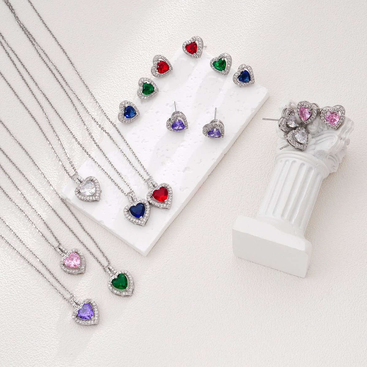suit inlaid zircon cross-border AliExpress love necklace women's peach heart earrings fashion temperament all-match clavicle chain jewelry