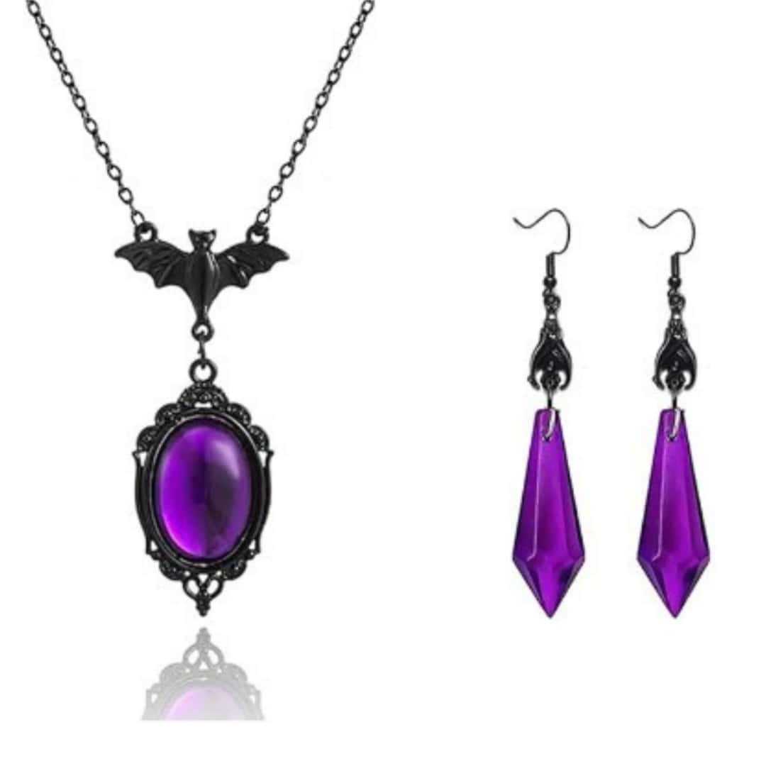Amazon's New Jewelry European and American Gothic Black Bat Necklace Vampire Purple Zircon Earrings Manufacturer
