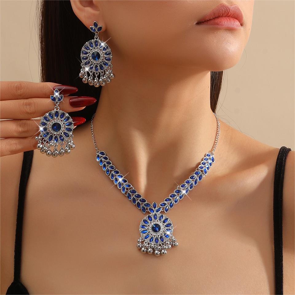 New Cross Border Bohemian Style Diamond Metal Necklace Earrings suit Middle East Retro Court French Pearl Water
