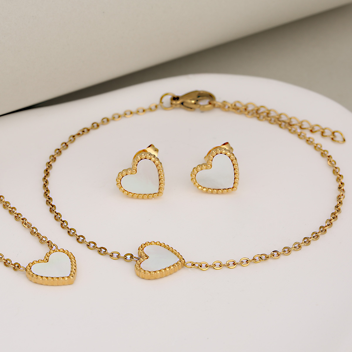 European and American Cross-border French Simple Oil Dropping Heart Shaped Shell Love Stainless Steel Earrings Necklace Bracelet Three-piece Set