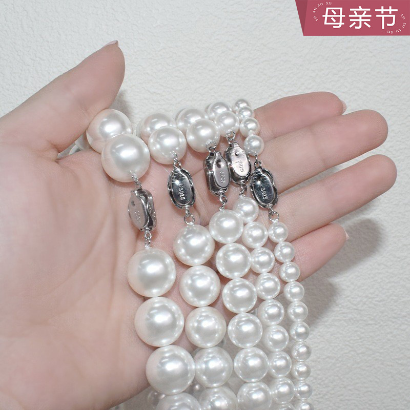 Ladieswear's Day S925 Silver Pearl Necklace Classic Round Shell Beads Mother Chain Australian White Mother-Of-Pearl Necklace Titanium Steel