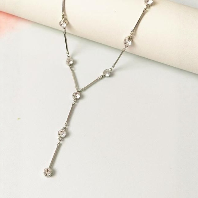 Niche Design Diamond-Encrusted Y-Shaped Necklace, Long Style, Simple and Simple Spring and Summer Geometric Tassel Clavicle Chain, Accessible Luxury and High-End Sense