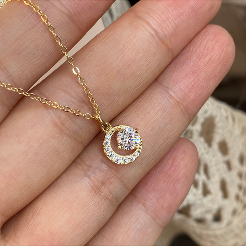 Minsheng Light Luxury Moon Necklace Women's Elegant ins Cool Style Niche All-match Collarbone Chain Simple Zircon Pendant