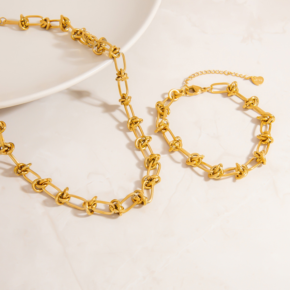 Stainless Steel Clavicle Chain European and American Style Knotted Titanium Steel Simple Geometric 18K Gold Versatile Color-Preserving Necklace Bracelet