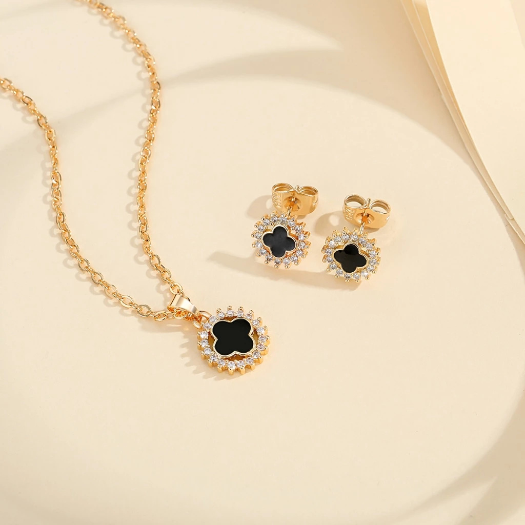 European and American Jewelry Four-Leaf Clover Necklace Exquisite and Fashionable Temperament Diamond-Encrusted Earrings Clavicle Chain Jewelry Set