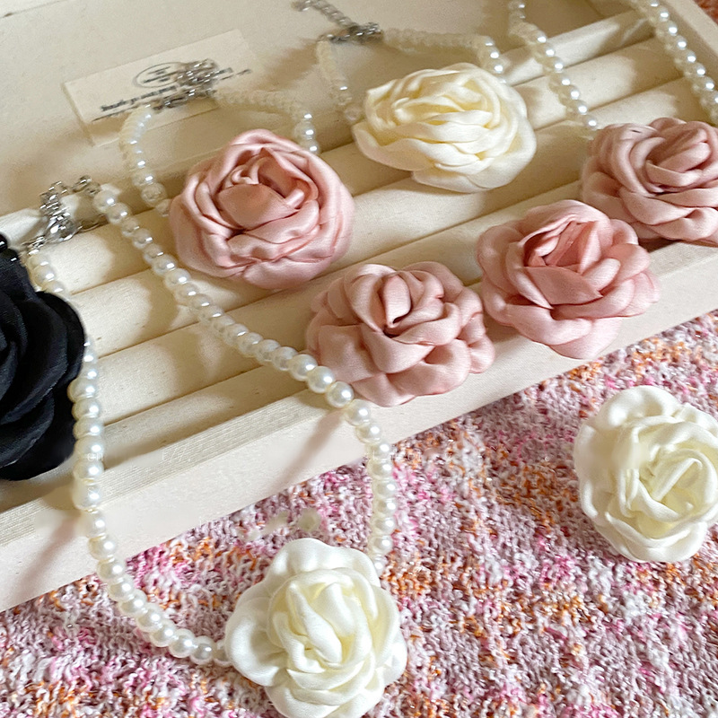 Hanluo~Pearl Flower Bracelet Necklace Autumn and Winter Sweet Elegant Sweater Chain Elegant Versatile Jewelry Set Niche