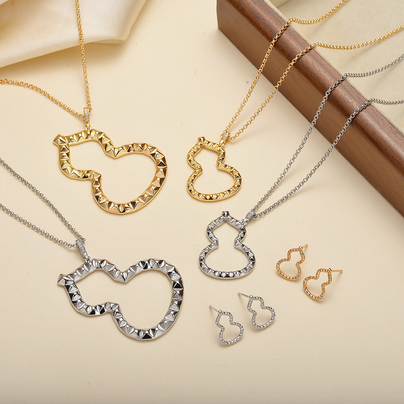 Cross-Border Original Crushed Ice Gourd Pendant Earring Set for Women, Fashionable Shiny Clavicle Chain Pendant, Gift for Girlfriend