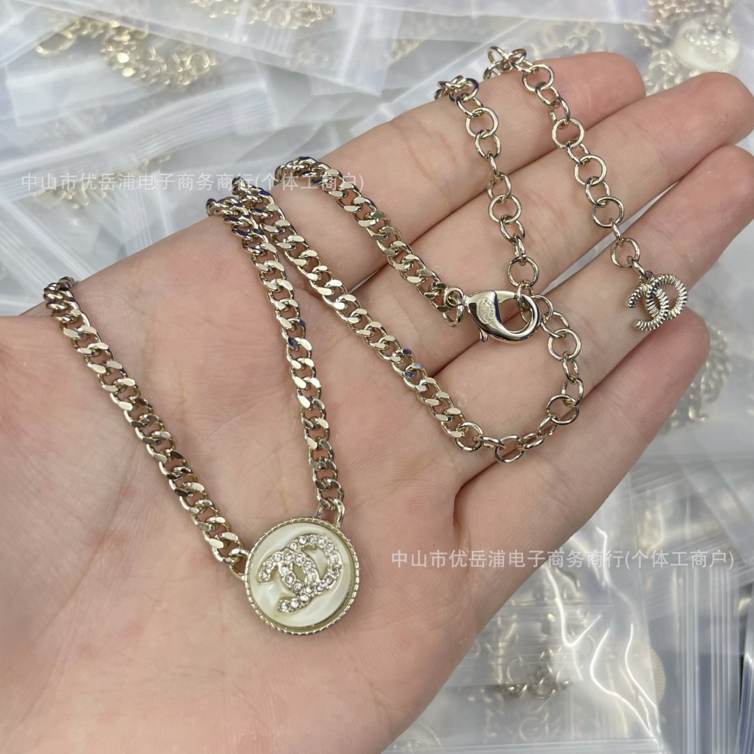 Authentic Real-Shot Chanel Double C Round White Button Set Necklace for Women, Chanel Grandma Fashion Earrings Wholesale Dropshipping
