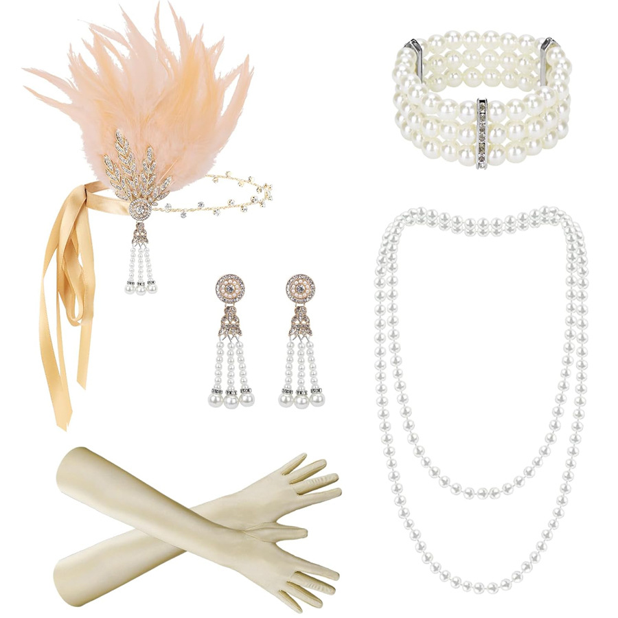 1920S Gatsby Party Yellow Feather Headwear Women's Hairband Jewelry Set Internet Celebrity Prom Performance Accessories