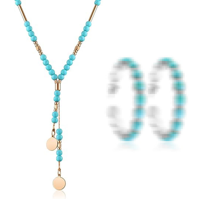 European and American Cross-Border Fashion Turquoise Tassel Pendant Necklace Earrings Set Women's Bohemian Long Necklace
