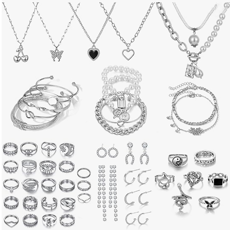 European and American Cross-border Amazon 53-piece Pearl Jewelry suit High-grade Multi-layer Necklace Eye of Horus Ring