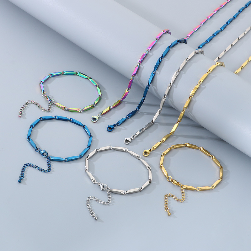 Hip-hop Distinctive Diamond Slub Chain Necklace Simple High-grade Stainless Steel Colorful Quenched Bracelet Men's suit