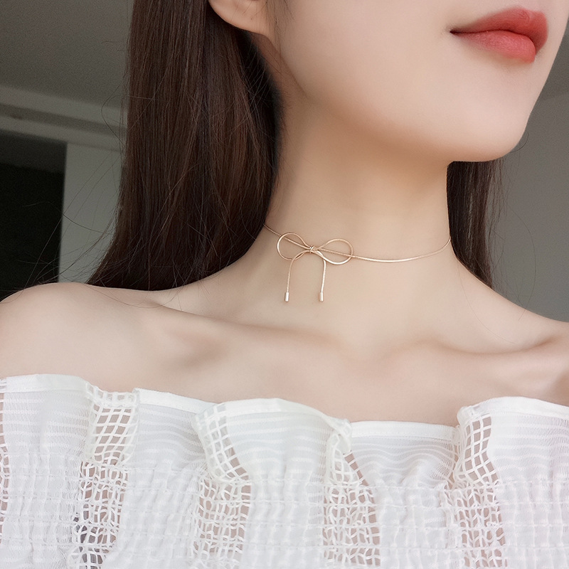 Light luxury niche design bow necklace 2021 new women's ins clavicle chain popular accessories collar