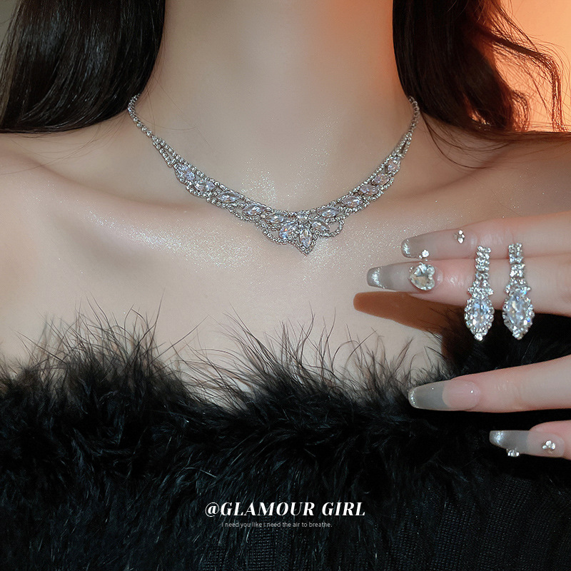 Factory Direct Supply European and American Cross-Border Fashion Evening Ball Necklace Earrings Jewelry Set Bridal Wedding Dress Accessories
