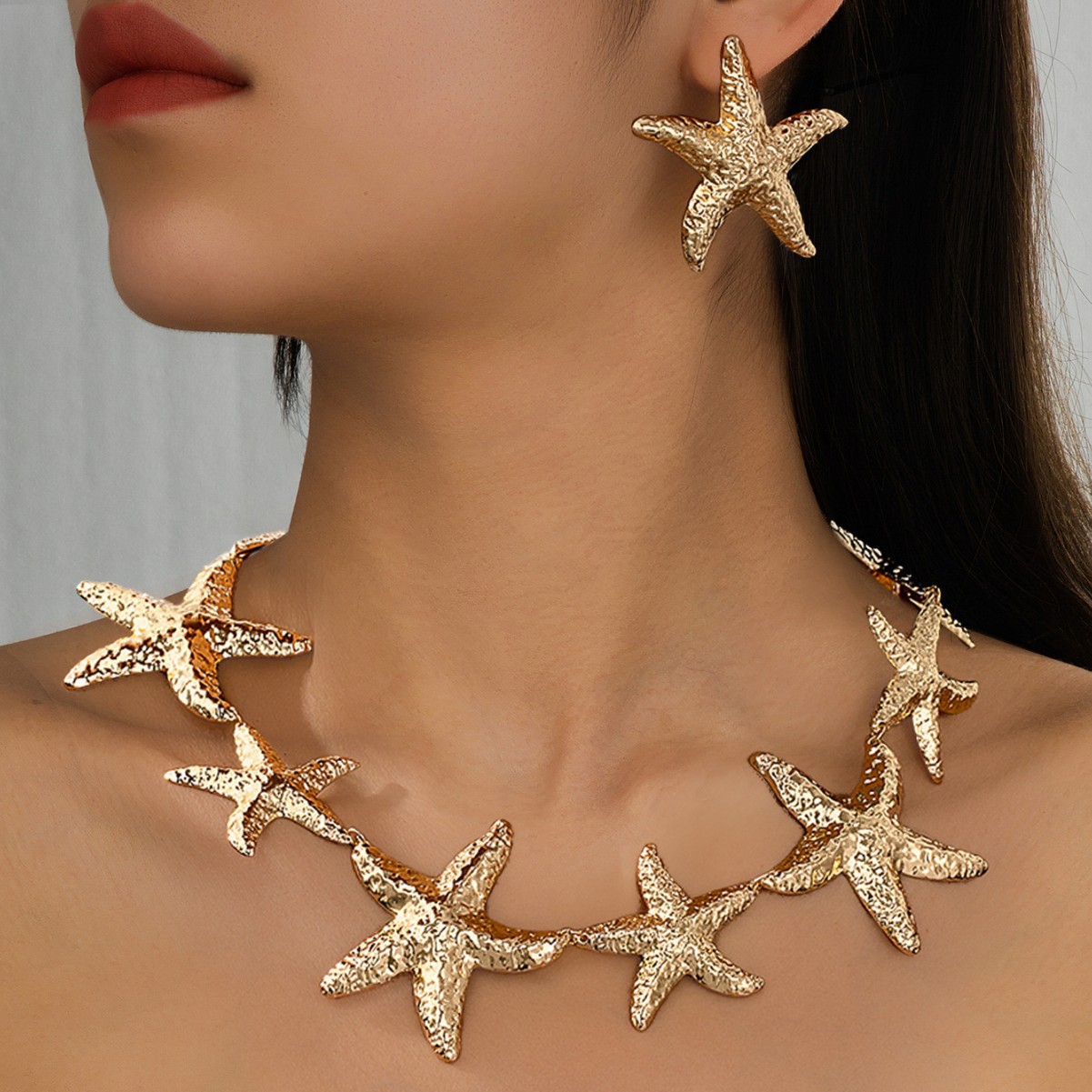 European and American Cross-Border Supply Ocean Style Exaggerated Starfish Necklace Earrings Set Seaside Vacation Style Niche Women