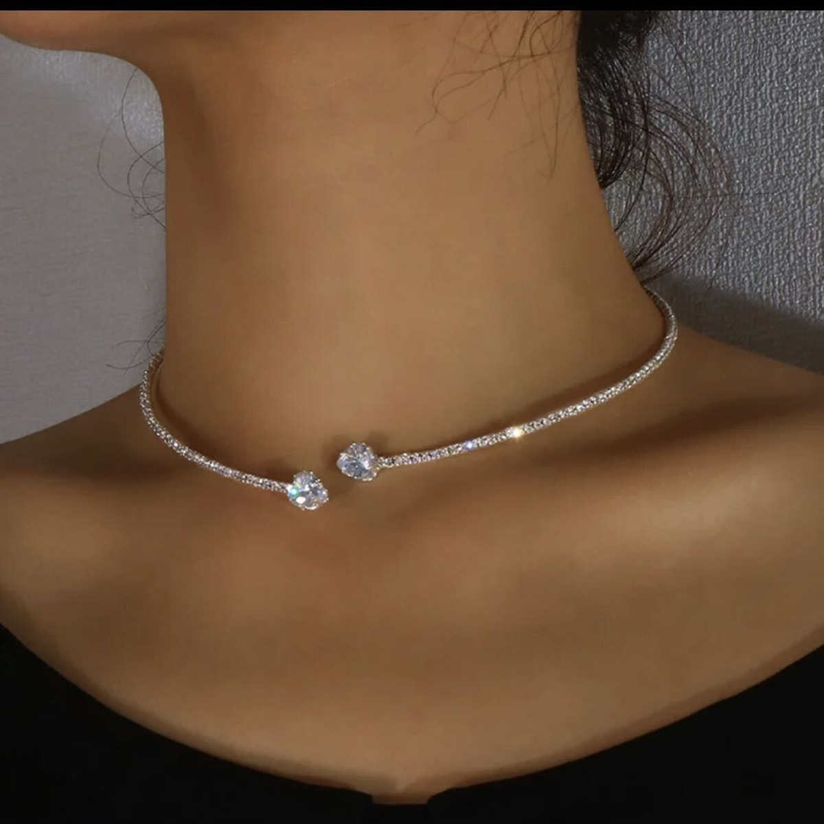 Amazon Cross-border Diamond Love Collar Bracelet Earrings suit Three-piece Zircon Collar Luxury Bridal Accessories