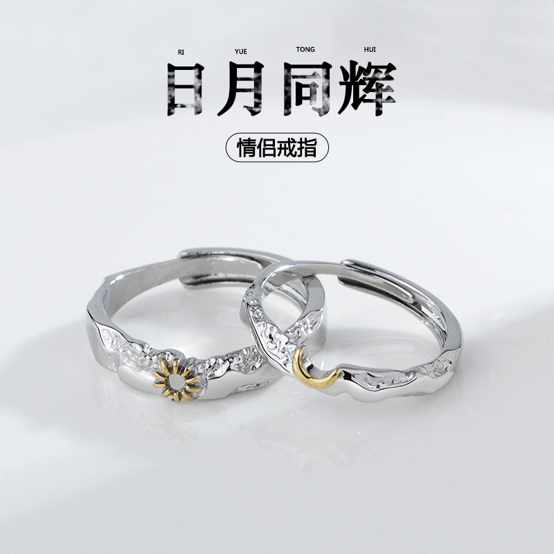 Runxin Sun Moon Tonghui couple ring a pair of fashionable light luxury gold open ring Sun Moon men and women ring