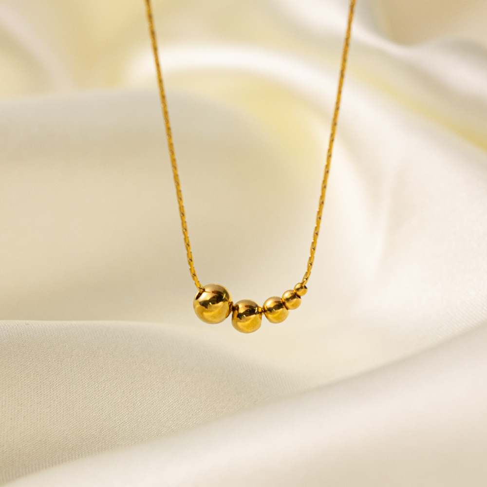 European and American Simple Wufu Gold Bead Necklace Women's Ins Niche Design K Gold Light Luxury High-end Cool Style Clavicle Chain