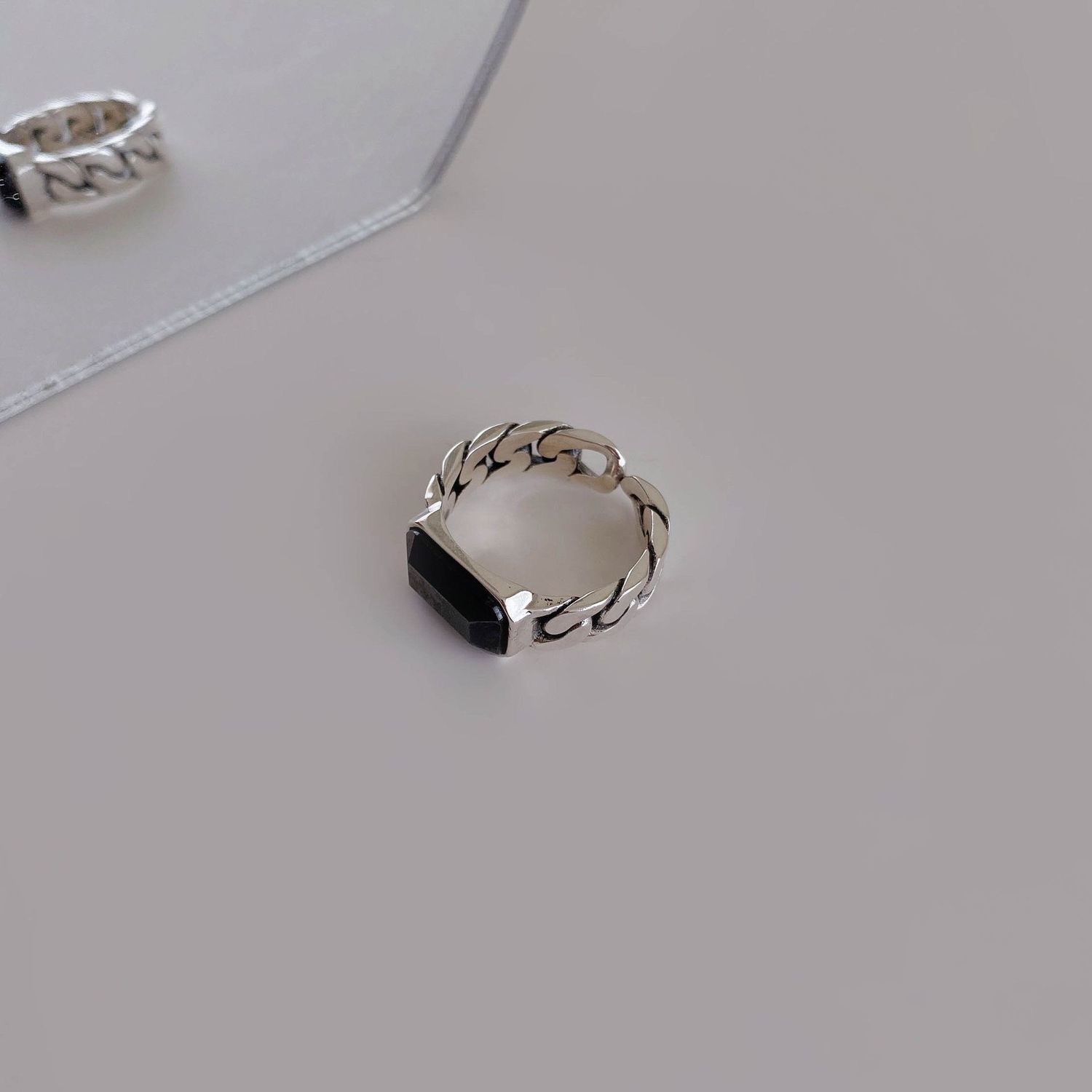 Blackstone Chain Index Finger Ring Female Niche Design Fashion Personality 2024 New Fashion
