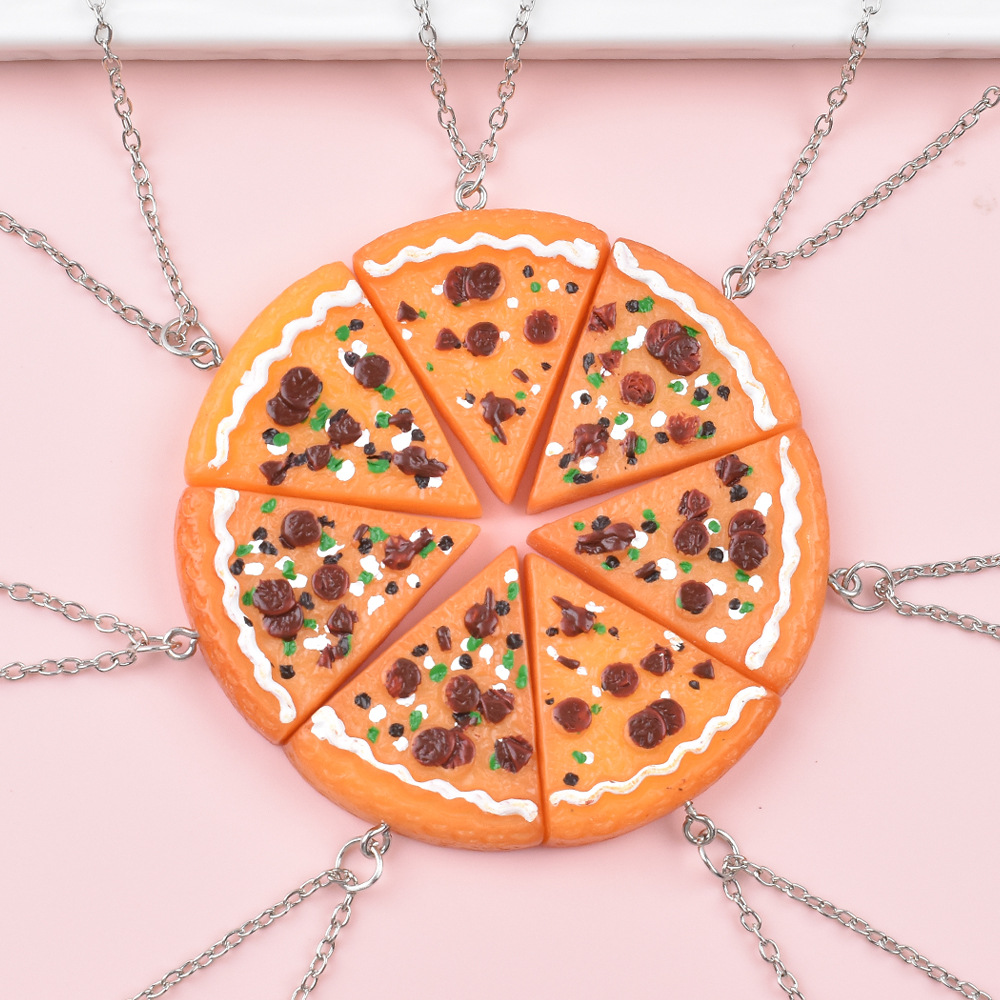 Cross-Border New Round Seven-Piece Set of Spliced Pizza Necklaces for Best Friends and Girlfriends, Friendship Spliced Pizza Pendant Wholesale