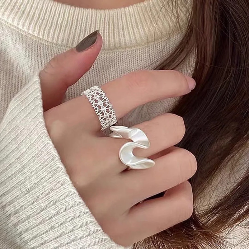 Chanel style Wave skirt ring female ins cold style irregular ruffled pleated frosted open ring