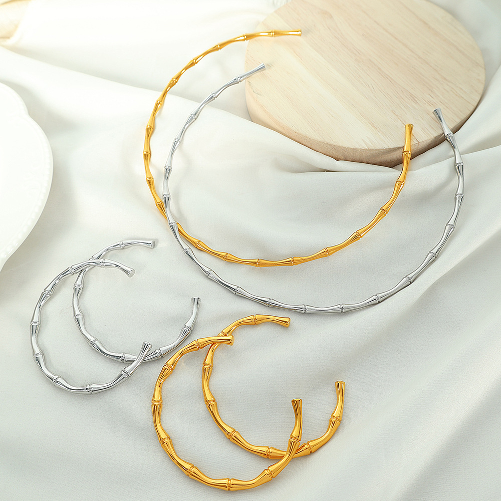 New Chinese style design fine bamboo open collar bracelet fashion simple personality National style necklace titanium steel plated 18K gold