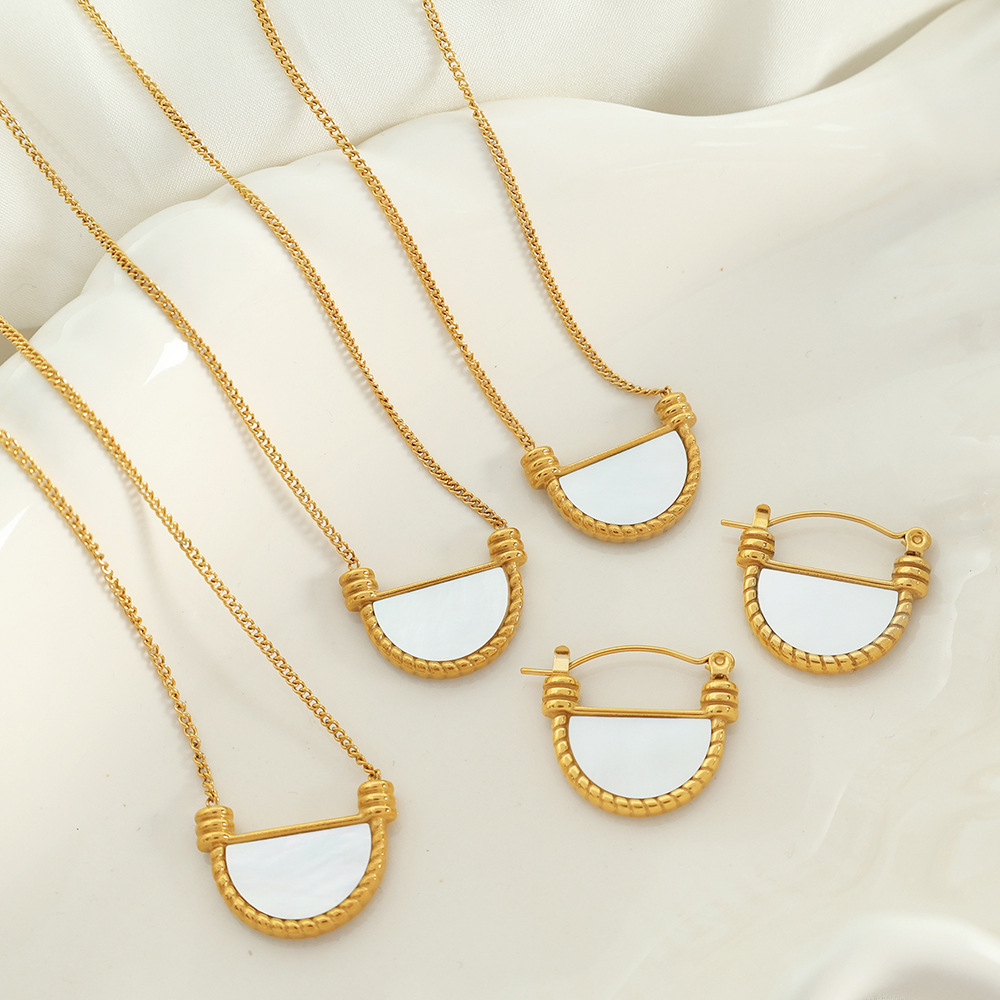 Cold style niche design retro thick cut white fritillary high-grade temperament cold style women's necklace chain earrings suit