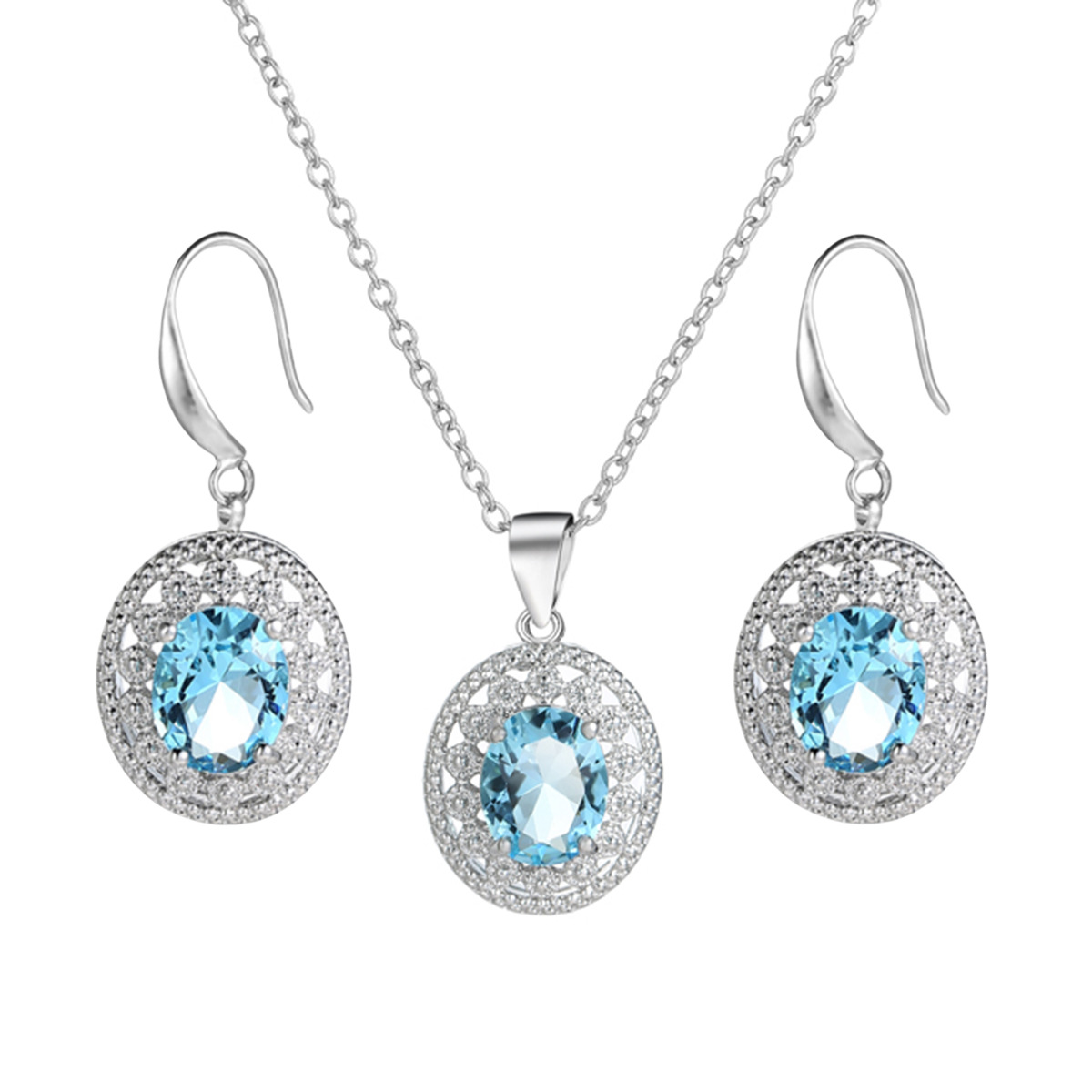 Cross-border Hot Hot Earrings Necklace Stainless Steel Chain Jewelry Valentine's Day Gift Blue Topaz Clavicle Chain for Women