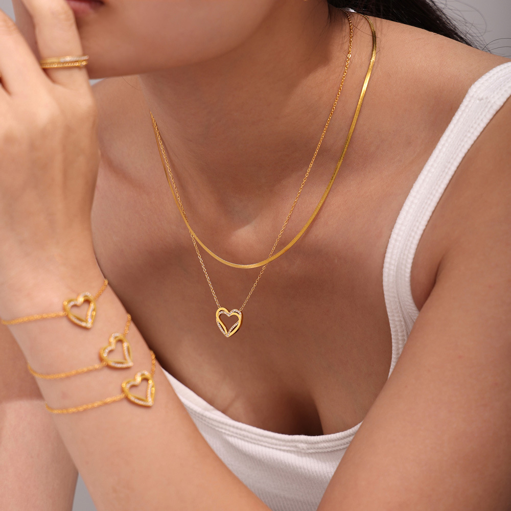 Sugar jewelry European and American unxiu steel zircon inlaid double love clavicle necklace PVO gold-plated cross-border jewelry