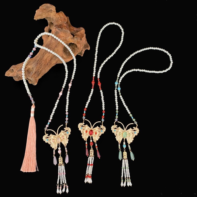 New Chinese-style Butterfly Pearl Necklace Antique Wreaths Back Cloud Tassel Hanfu Horse-faced Dress Cheongsam Simple Elegant Accessories