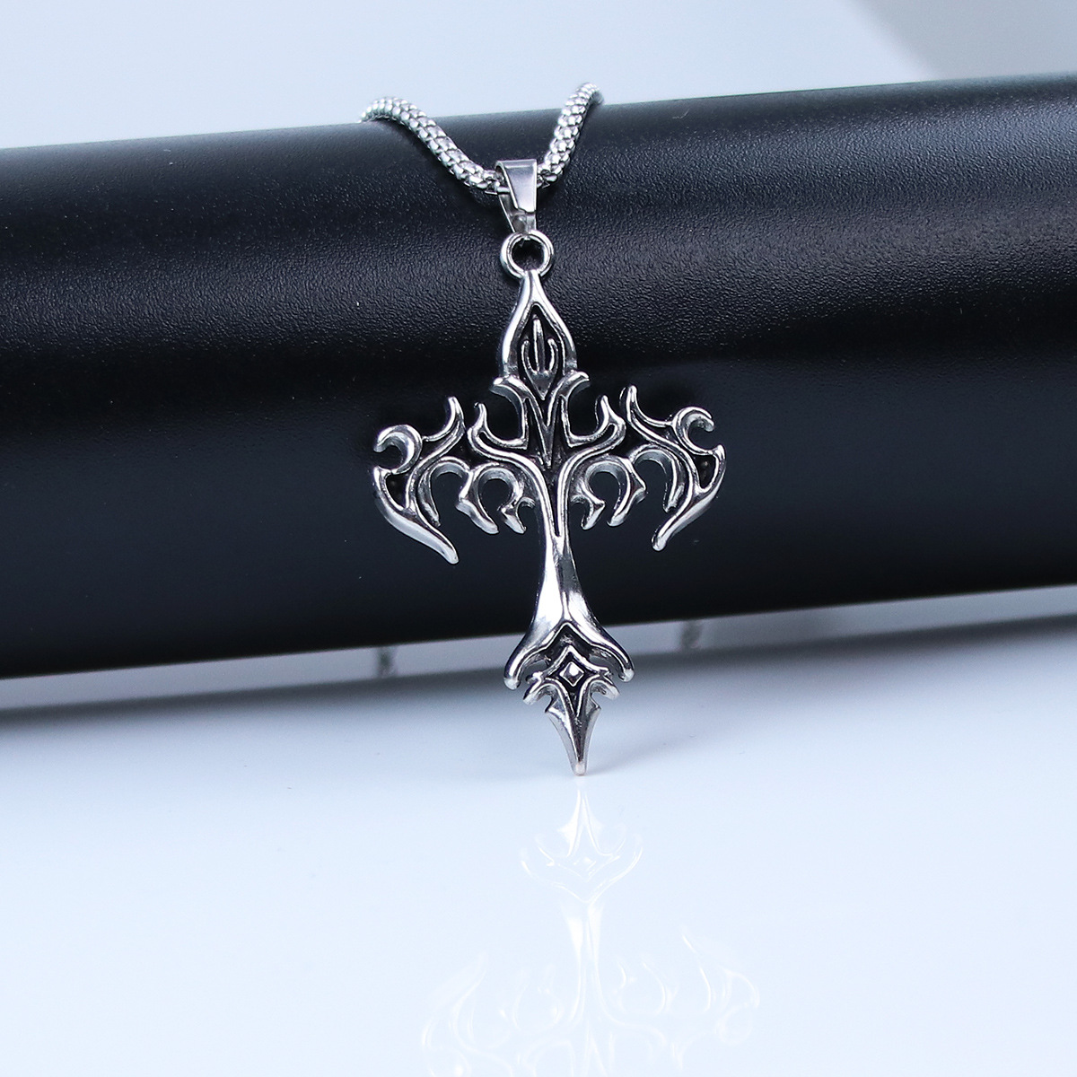 Cross-Border Versatile Flame Retro Cross Necklace Women's Jewelry Alloy Pendant Hip-Hop Titanium Steel Sweater Chain Accessories for Men