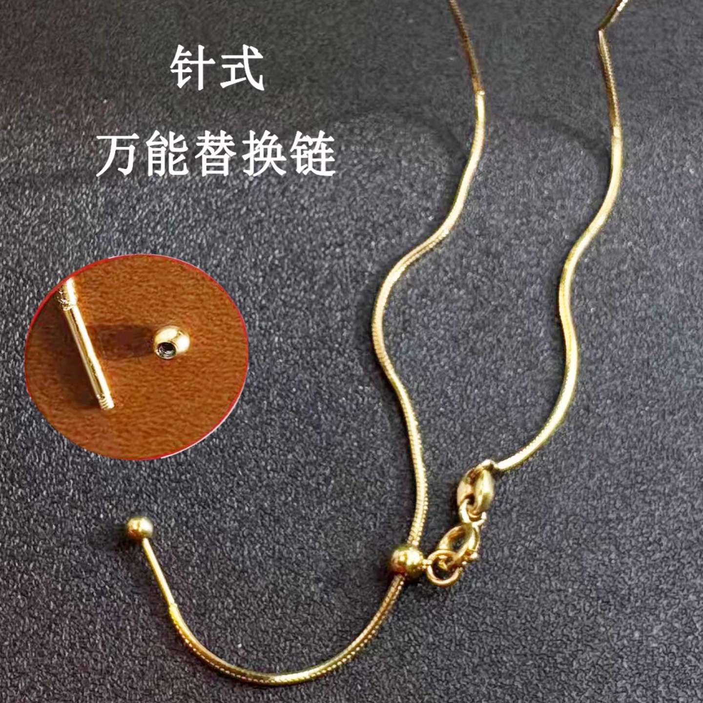 Adjustable Pin Type Universal Chain Pendant Replacement Necklace for Women Beaded 18K Gold Versatile Mirror Octagonal Snake Bone Chain