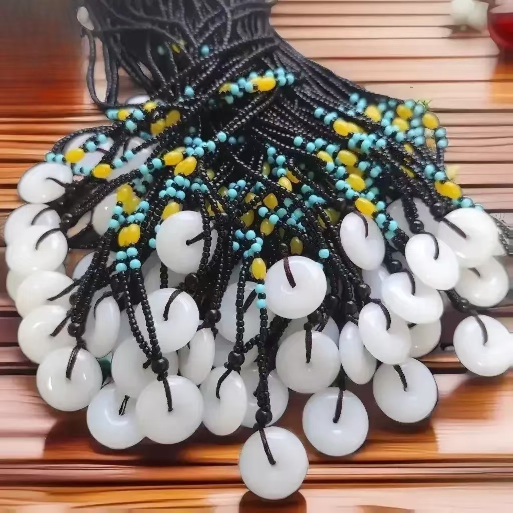 Wholesale Imitation Hetian Jade Safety Buckle Necklace Ethnic Style Simple Long Imitation Jade Pendant Men's and Women's Sweater Chain Direct Sale