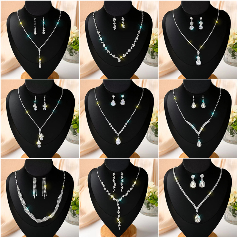 Cross-Border Wedding Necklace Jewelry Fashion Three-Piece Set Earrings Decorated with Full Diamonds Claw Chain Light Luxury High-End Women's Bracelet