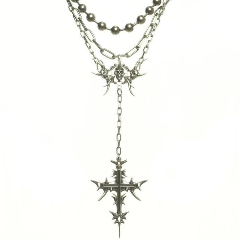 Cross-Border New Black Painting Series Dark High-End Chain Tassel Necklace Niche Cross Combination Long Chain Wholesale