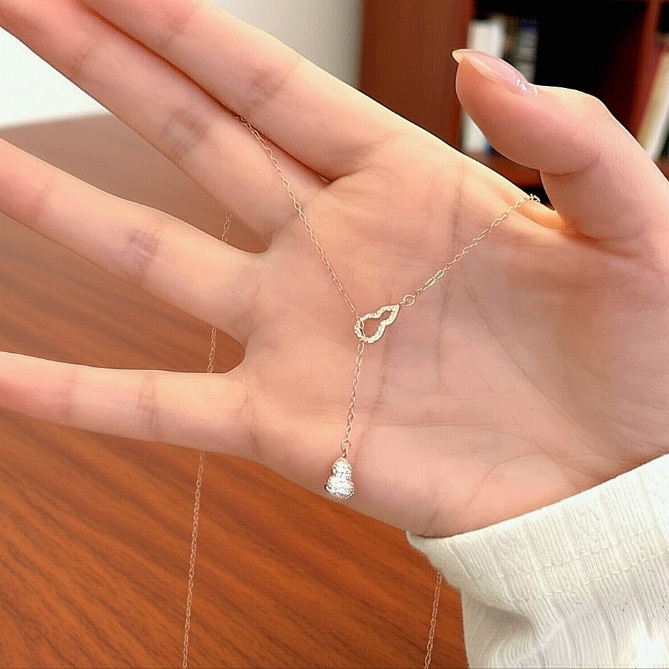 Trendy Full Diamond Gourd Necklace for Women, Niche Light Luxury Fashion High-End Fortune Tassel Sweater Chain Accessory Wholesale