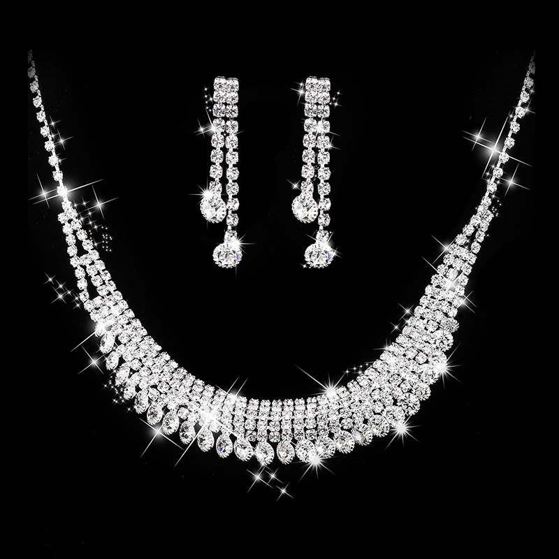 Jewelry European and American fashion bright rhinestone necklace earrings wedding suit 497