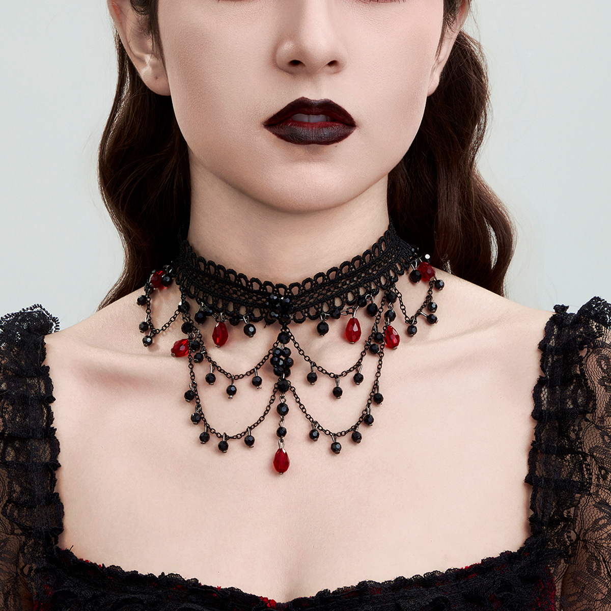 European and American cross-border jewelry palace style black lace clavicle chain retro cross crystal beaded tassel necklace