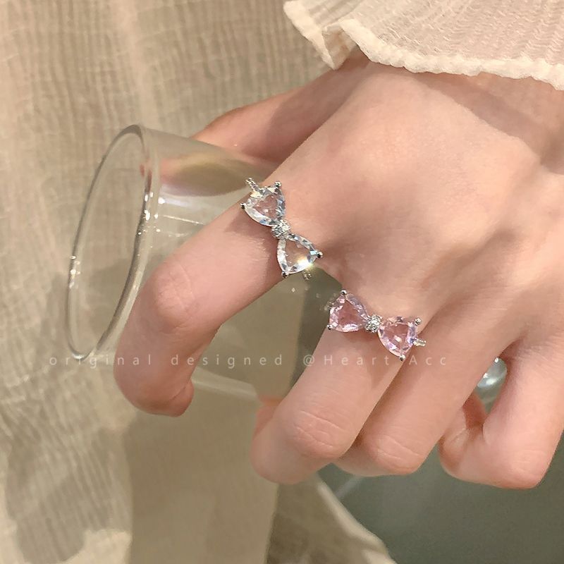 Bowknot Ring Women's Ins Niche Design Sense Opening Adjustable Ring Light Luxury Rhinestone Finger Ring Tail Ring Trendy