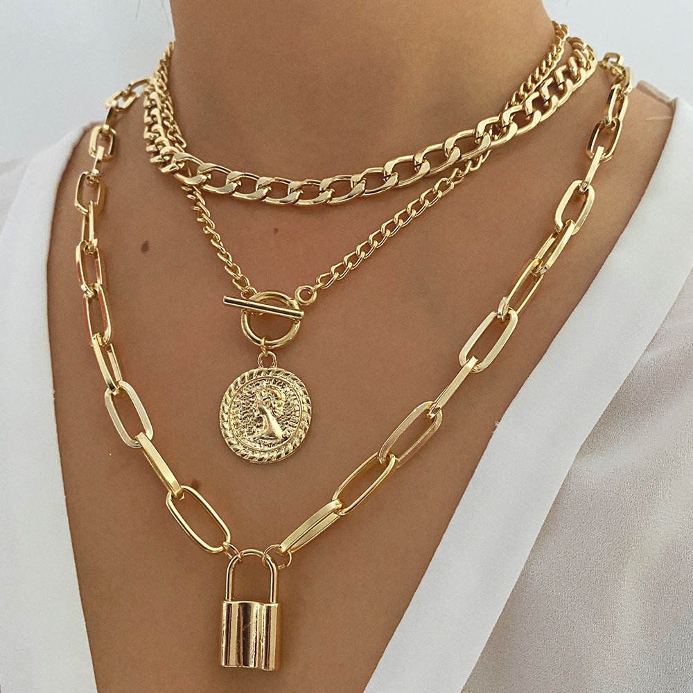 Cross-Border Light Luxury Niche High-End Necklace Alloy Hip-Hop European and American Personalized Fashion Design Stacking Accessories Jewelry