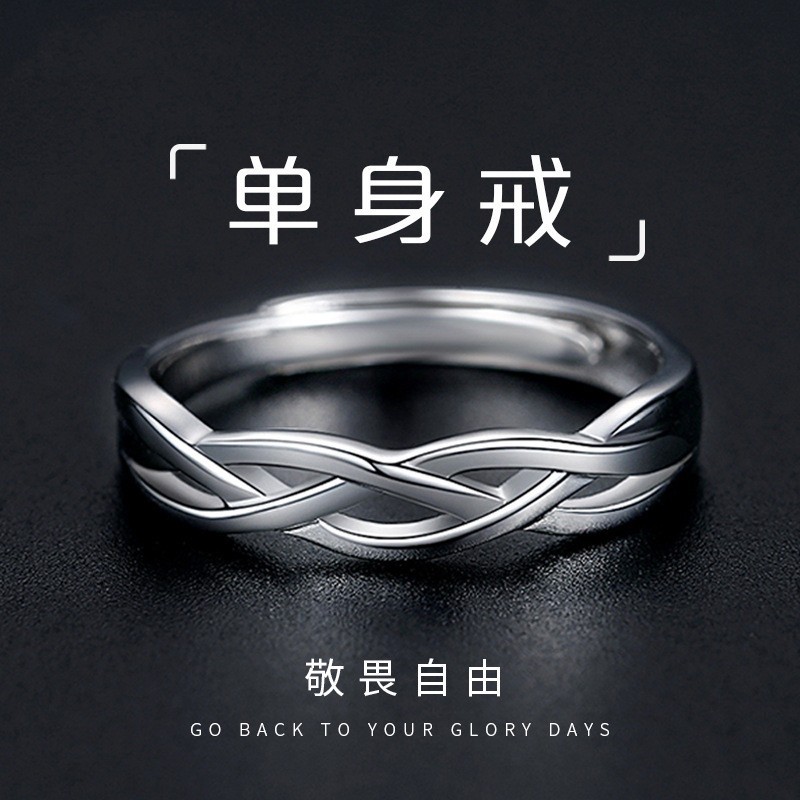 Moss Wrap Men's Ring Simple All-match Interwoven Ring Trendy Men's Celibacy Hip-hop Tail Ring Silver Plated Open Ring