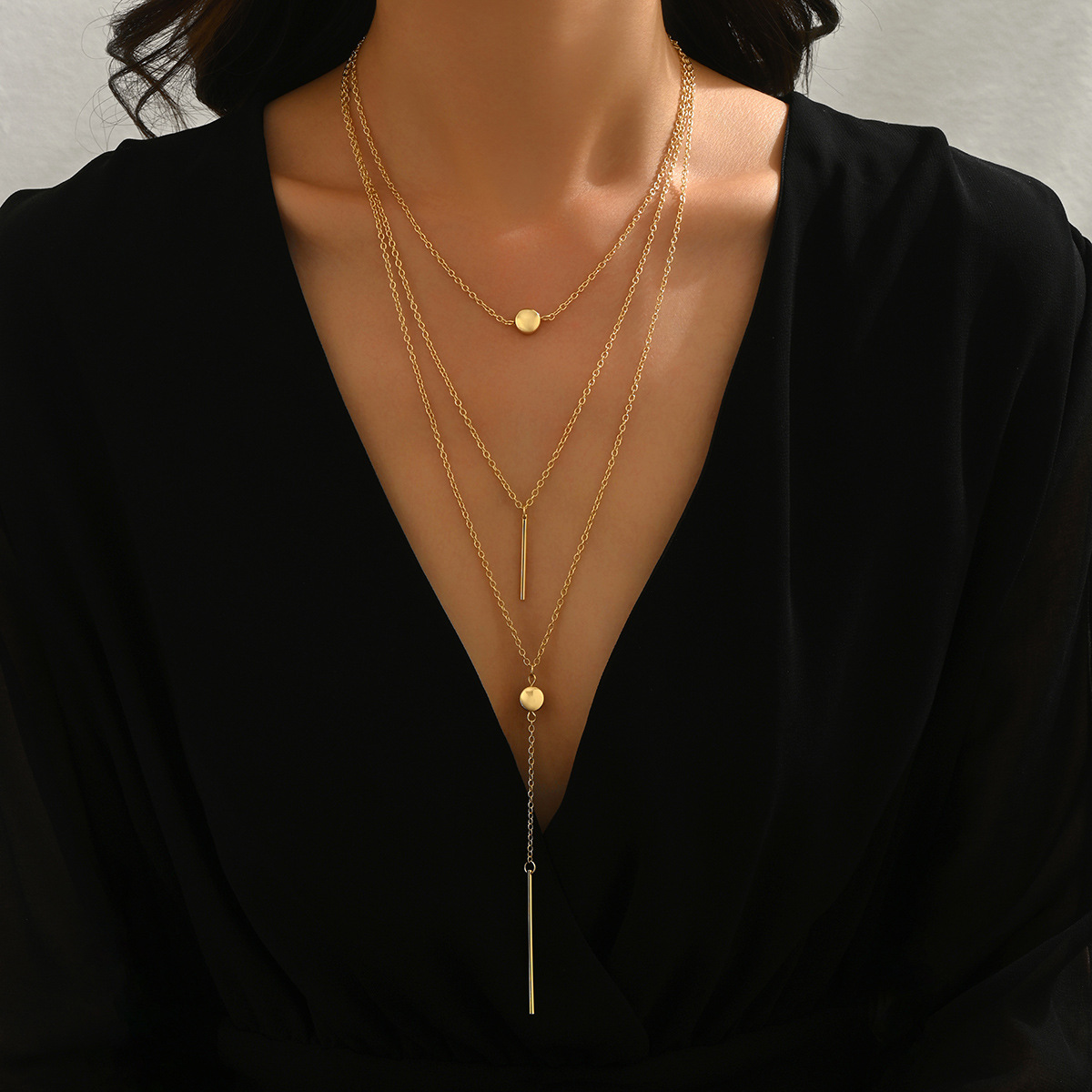Cross-Border European and American Hot-Selling Normcore 3-Layer Simple Pendant Chain Necklace Trendyy Personalized Jewelry Wholesale Necklace
