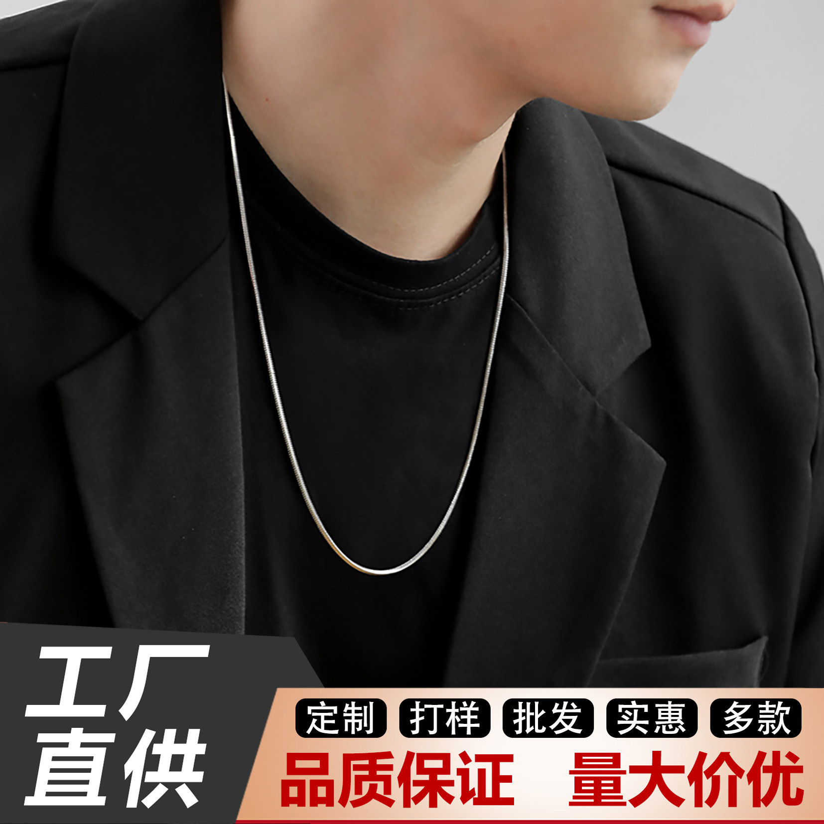 Cross-Border Titanium Steel Round Snake Chain Plain Chain Non-Fading European and American Summer Simple and Unique Stainless Steel Snake Bone Chain Necklace Pendant