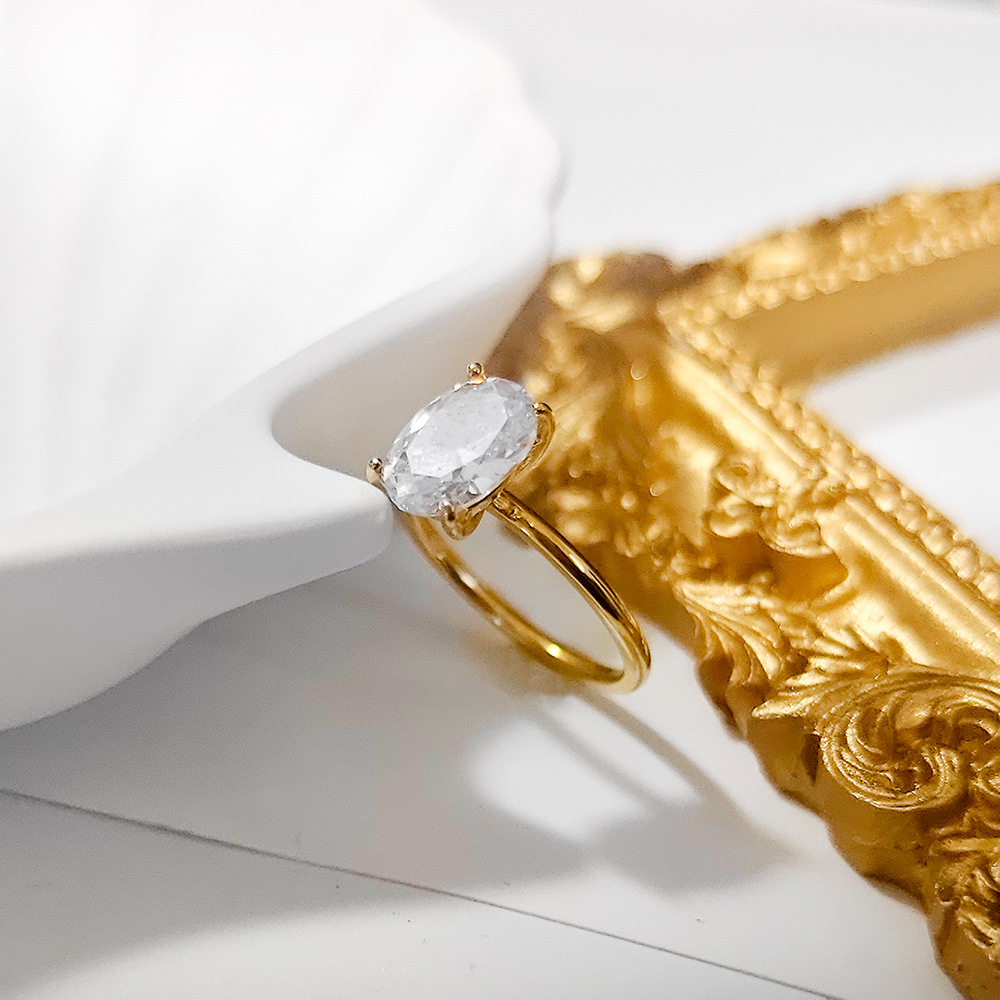 European and American Cross-border INS Style Wedding High Luxury Oval Zircon Women's Ring Fashion High 18K Gold Simple Titanium Steel Ring