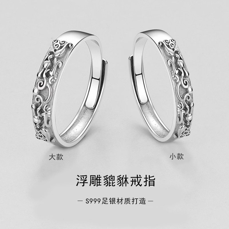 S999 Foot Silver Pi Xiu Couple Ring Personality Lucky Lucky Relief Stereo Sterling Silver Ring Domineering Fashion Opening
