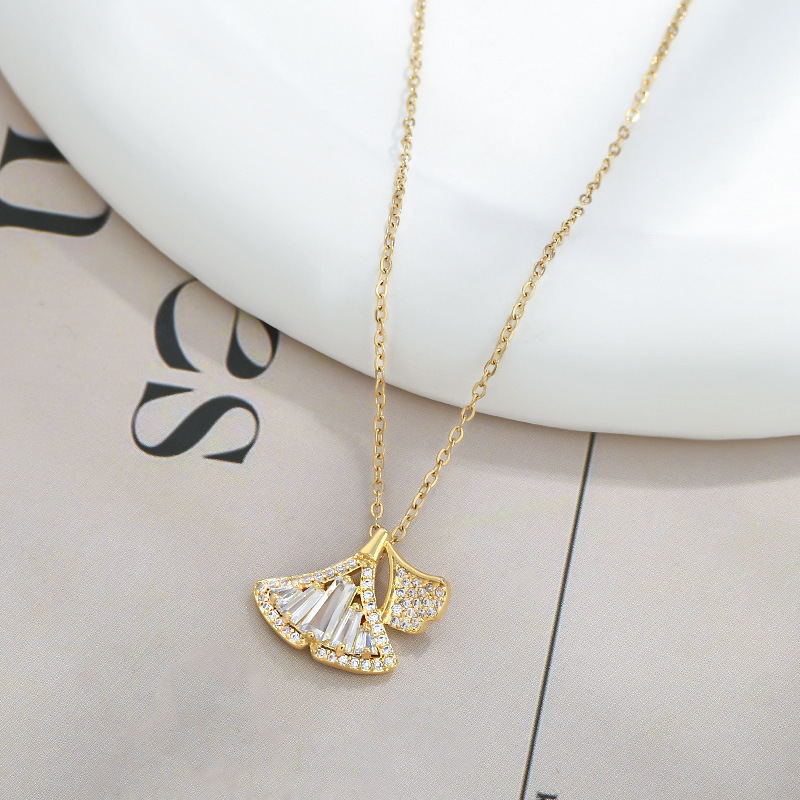 Copper-Plated Real Gold Pendant Micro-Paved Zircon Light Luxury Ginkgo Leaf Necklace Simple Clavicle Chain High-End Accessories Factory Price